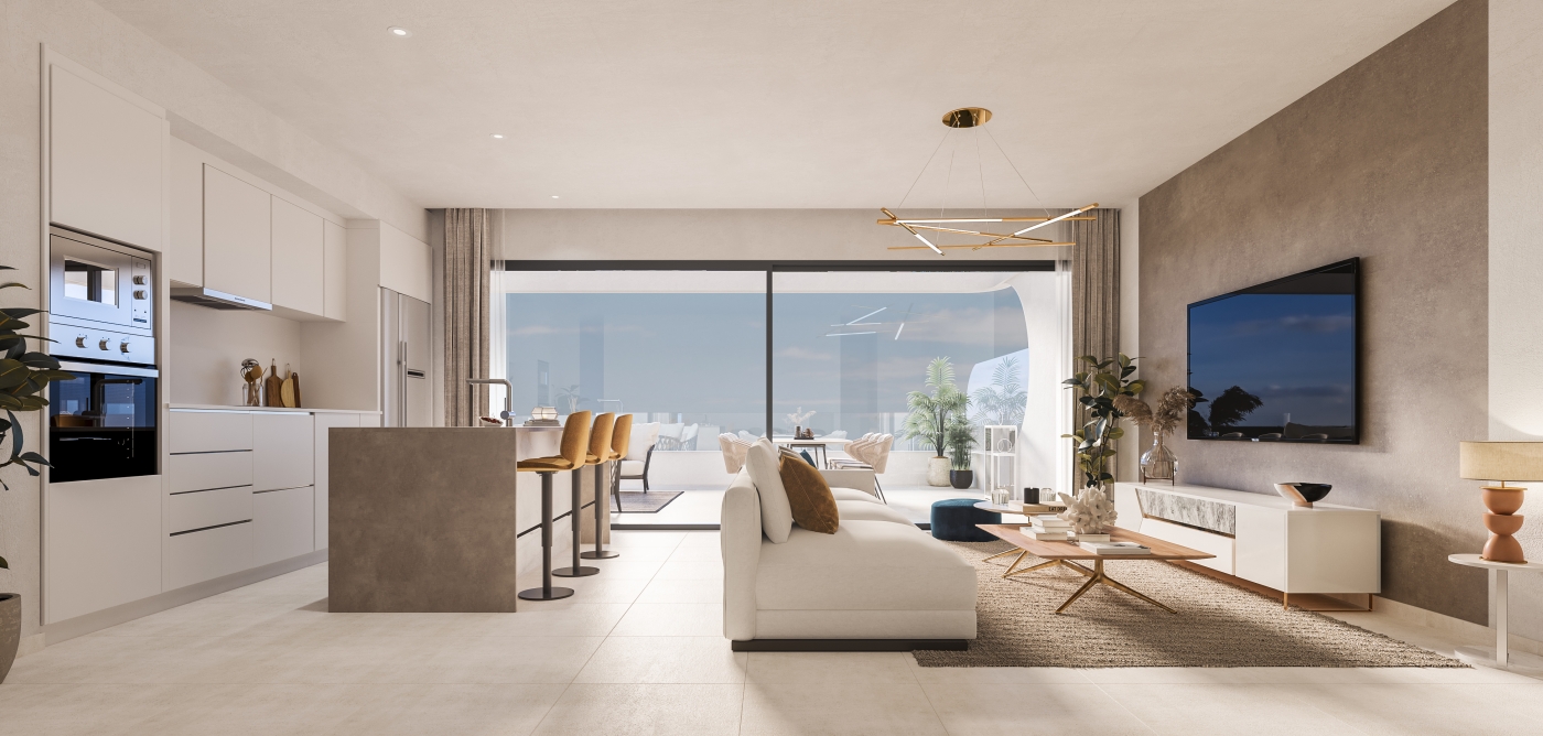 N10408This new development is located in Estepona, one of the most popular and prominent towns on the Costa del Sol. In the surrounding areas of this place are some of the most prestigious golf courses in Europe, the most complete offering of restaurants and hotels, fantastic beaches and exclusive commercial areas. This residential complex is characterised by its excellent travel links, as it's only 5 minutes by car from Estepona, 10 minutes from Puerto Banús and 20 from Marbella. Travel is easy by car, taxi or public transport as it's only 50 minutes (80 km) from the International Airport of Málaga, and 43 minutes (50 km) from the International Airport of Gibraltar. This development is made up of 5 three-storey blocks with: Ground floor with a garden and possibility of a private pool, Middle floor, Penthouses with a solarium & terraces of 108m². All apartments come with a parking space. It is a residential complex with very refined architecture. It stands out for the elegance of its design, opting for white, which integrates it entirely into the Mediterranean environment without abandoning a contemporary image of clean and fluid lines. It has large, well-laid-out interior spaces with large glazing to ensure natural light. Light, climate and comfort combined in a top-quality development. The common areas have been designed to provide a space in which you can enjoy and relax, to break off from your routine and above all to increase the quality of life. You'll be able to choose between a dip in the pool, relaxing in the large garden, doing yoga, looking after yourself in the open-air gym... all within a safe and secure area. These are the details that make the difference.