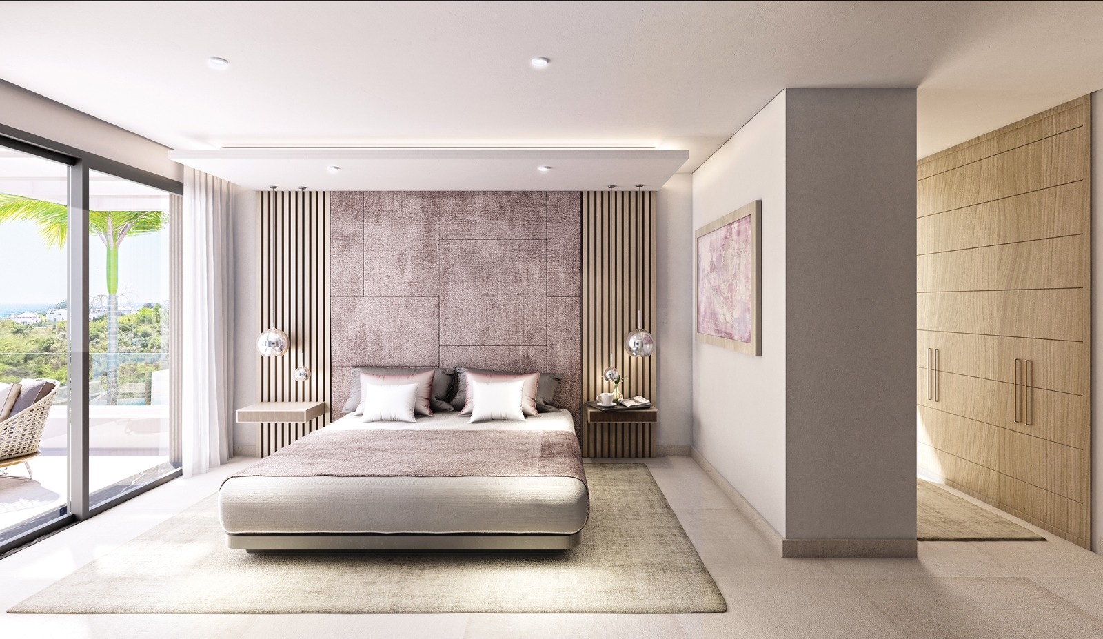 Set on 2 floors, these spacious villas have double height ceilings in the living room, enhancing the sensation of space and light. The clever use of glass ensures that views across the garden and out towards the horizon are always free from obstruction.
