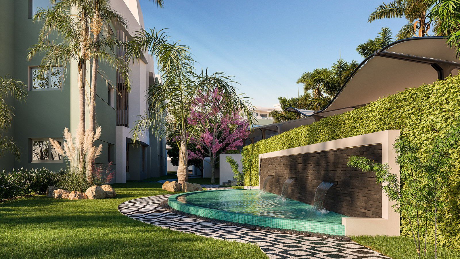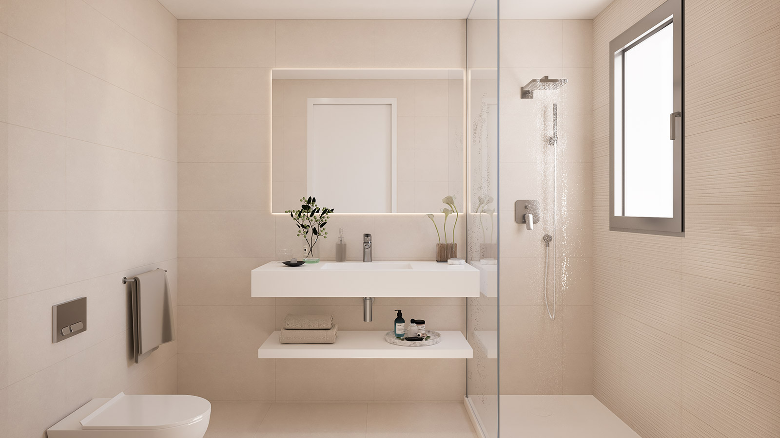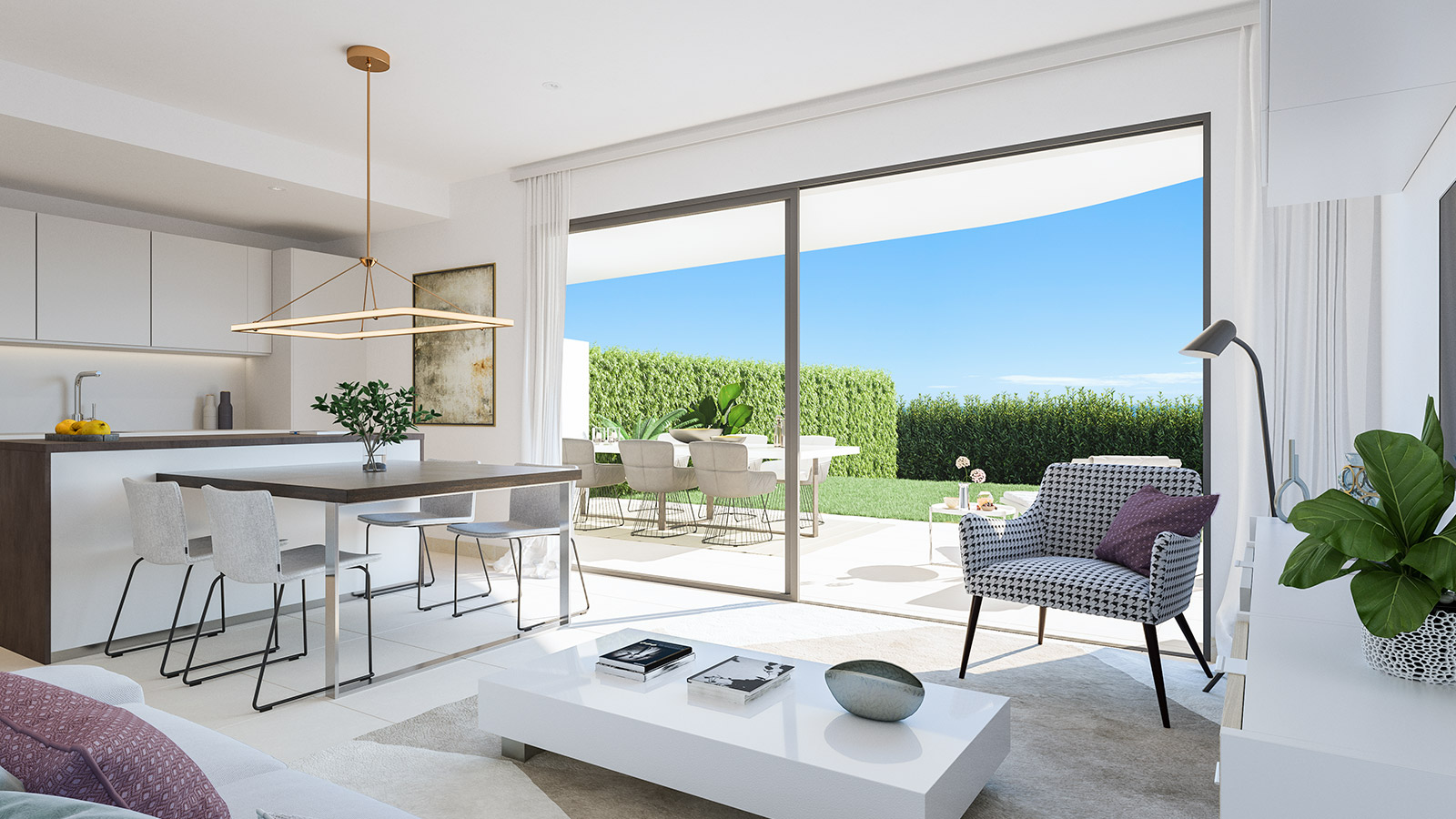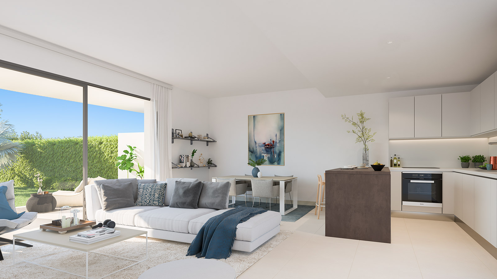 This spectacular residential development is located in La Cala de Mijas with two and three bedroom properties and penthouses. Its elevated location commands privileged views over the sea and Calanova golf course. A cutting-edge project in each element is an essential piece of the design philosophy. Design and detailing are impeccable, and interior space ranges from 87m2 to 115m2, with large panoramic terraces.