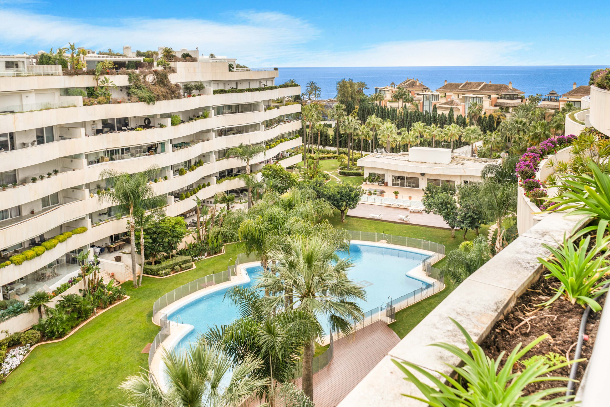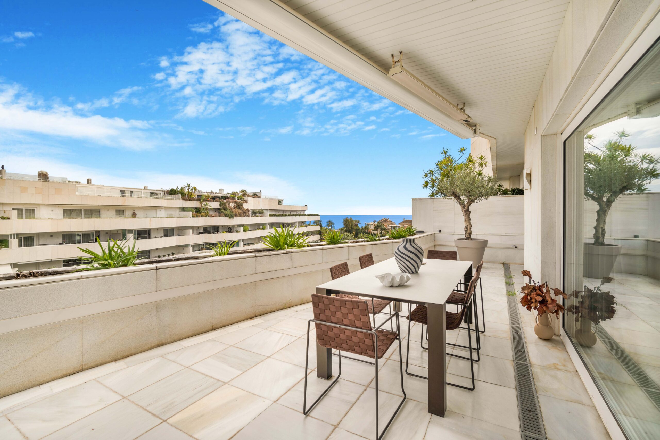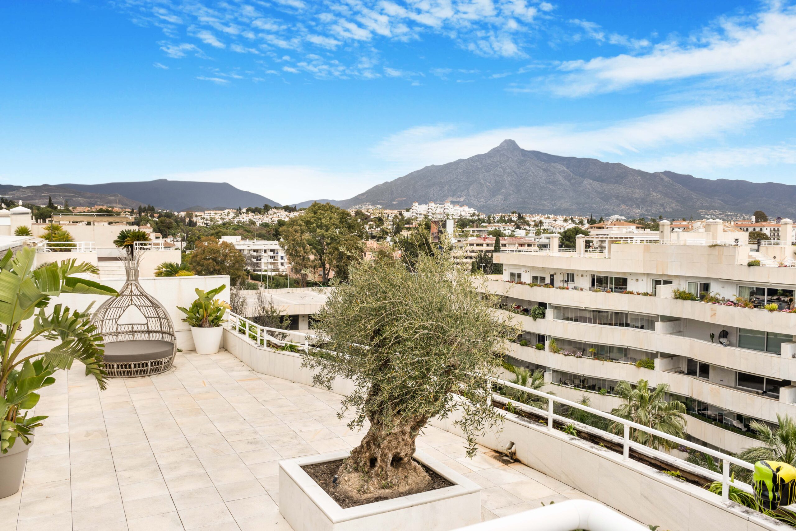Exquisite and opulent duplex penthouse situated in the prestigious Embrujo de Banús, an enclave renowned for its upscale residences. Set amidst lush tropical gardens, this complex boasts two swimming pools, a gym, sauna, and SPA facilities, all under the vigilant eye of 24-hour security. Its prime location ensures easy access to the beach and the renowned Puerto Banús.This sprawling property spans an impressive 632 m2 and has undergone a complete renovation, incorporating the finest quality materials and luxurious finishes. Accessible via a private elevator, upon entry, one is greeted by a grand foyer leading to a spacious living area divided into two sections. The first segment comprises a dining area and a guest toilet, while the second features a cozy fireplace, comfortable seating, and an extraordinary wine cellar.The kitchen stands as a testament to modernity, fully equipped with top-of-the-line appliances, and complemented by a service area and bar. Accommodations include four bedrooms, each accompanied by its own en-suite bathroom. The master bathroom boasts a luxurious bathtub and walk-in shower. All bedrooms seamlessly flow out onto the magnificent terrace, offering serene sea views and ample space for outdoor lounging and dining.Ascending to the upper floor reveals an expansive second terrace spanning approximately 300 m2. This area features a fully enclosed and air-conditioned living space, a covered dining area adorned with an African theme, and a fully equipped kitchen, complete with a bathroom. Additionally, the rooftop terrace houses a heated pool and a sunbathing area, providing panoramic views of the surroundings.Luxury abounds throughout the home, with features such as electric awnings, LED lighting, adjustable heating and air conditioning via a home automation system, and a cutting-edge fireplace and wine cellar. Two private parking spaces in the underground garage and a sizable storage room are included with the property.