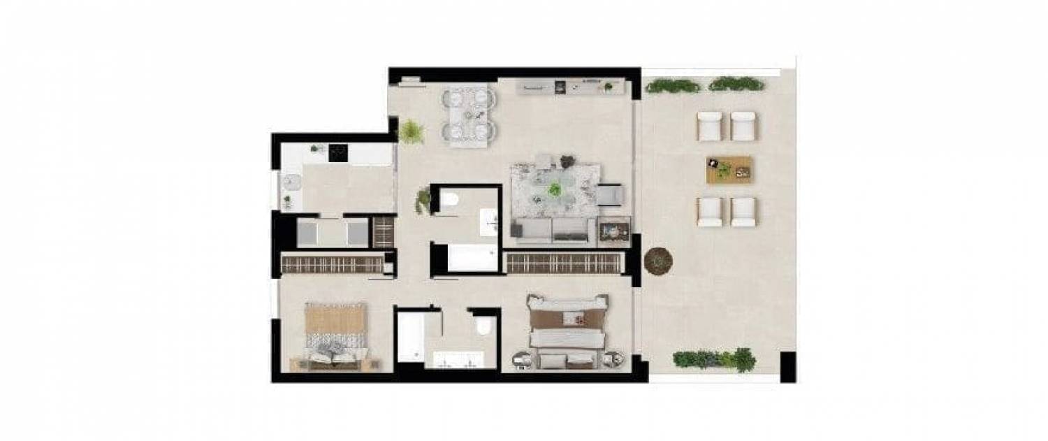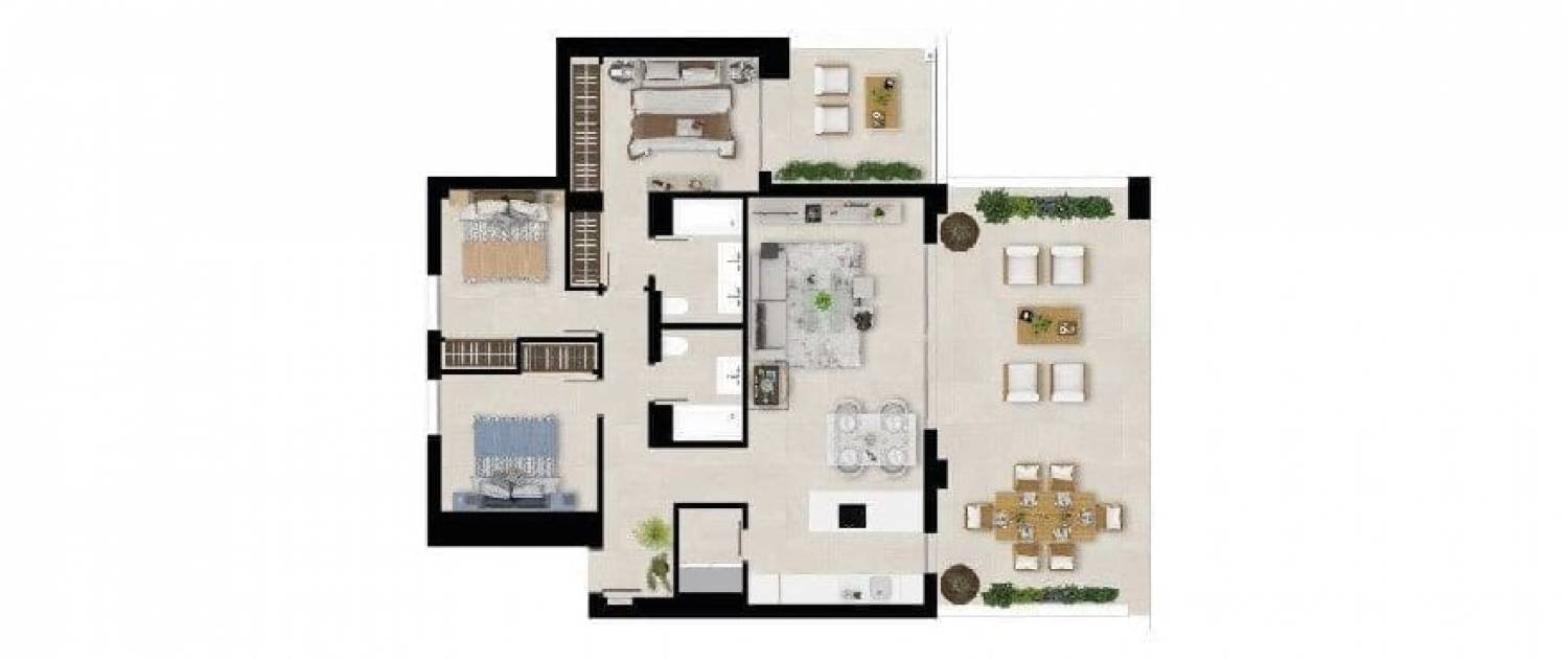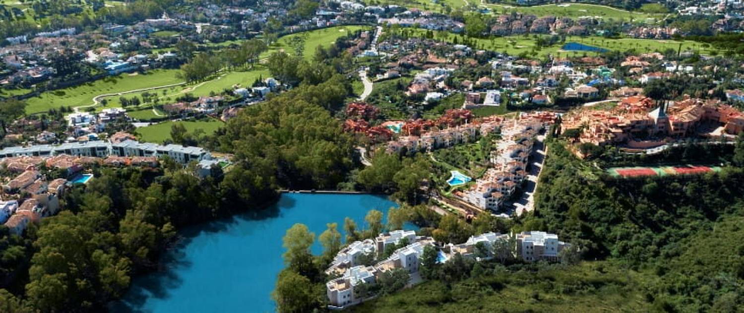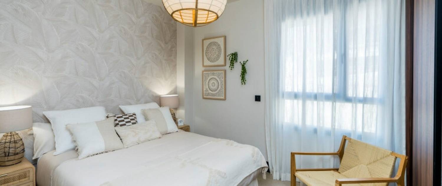 The Marbella Lake project has been designed to ensure that all of the homes enjoy impressive panoramic views from the generously sized terraces and living rooms. Architecture in the communal areas at Marbella Lake is inspired by the “Boho Chic” and “Country Chic” aesthetic concepts where natural materials and colours are combined to blend into the local scenery in a balanced way, favouring a relaxed ambience and an escape to peaceful surroundings.